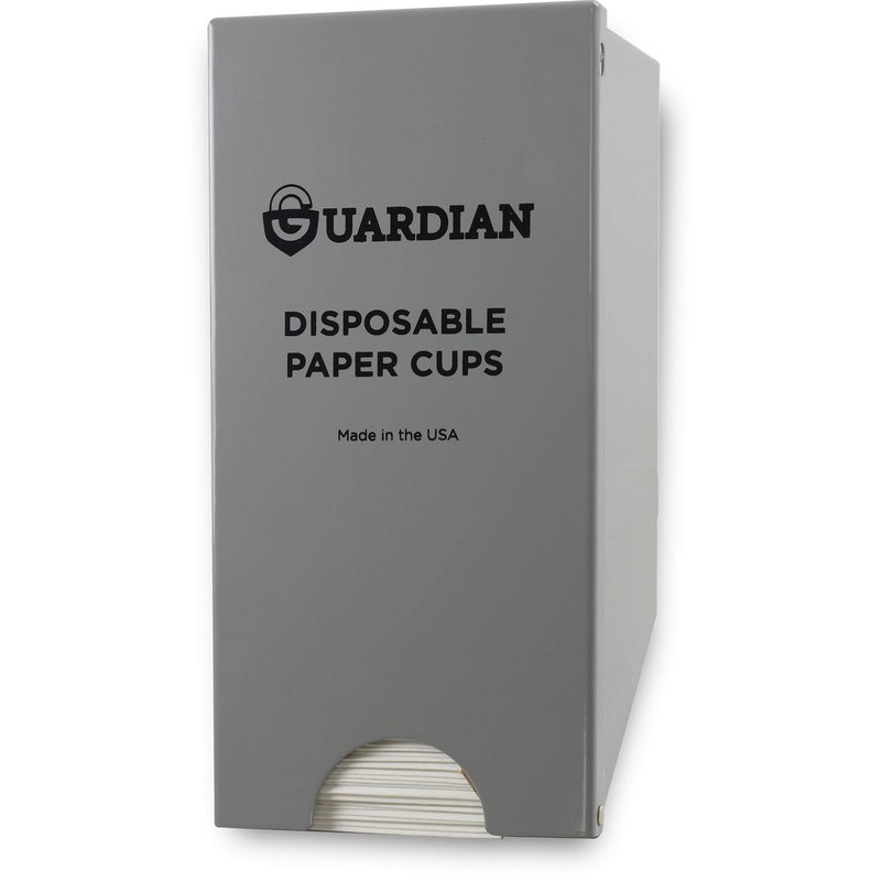 Guardian Paper Cup Dispenser Wall Mount (Gray, 250 Cup Capacity): Conveniently organize Guardian’s 4 oz paper cups with our disposable cup holder wall mount dispenser. This durable and user-friendly cup dispenser water cooler holder is custom fit to store and dispense Guardian’s 4 oz water cups. Our mountable cup holder securely holds 250 disposable paper cups and consistently dispenses one cup at a time to avoid waste. — How to Refill: The front-loading design of these dispenser paper cups holders allows for easy refilling. Simply open the front panel of this kitchen, break room, or bathroom cup dispenser, place the cup stack inside, and snap it close. The wall-mounted paper cup organizer can be installed on any wall or post – inside or out – by sliding the dispenser onto the mounting bracket. The formed and welded steel construction of our cup holder office dispenser is resistant to weather, corrosion, and fading, even in rough environments. This paper cup dispenser is ideal for many locations and uses such as water cooler areas, break rooms, fitness centers, hospitals, parties, trade shows, food trucks, and product demonstrations. --- About Us: Guardian Industrial Supply Group has been in operation for more than 35 years and is a leader in its field as a single source envelope and flexible paper packaging supply house. Our diverse community of customers ranges from multinational TSE corporations to privately held family businesses, food service to automotive, property management to government agencies.