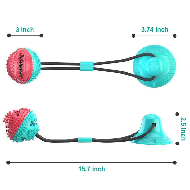 - It is a suction cup dog toy for aggressive chewers with functions of cleaning teeth, grinding teeth, removing calculus, keeping dental health, reliving anxiety, training agility, improving IQ, interactive tug of war, killing boring time and automatic food distribution.