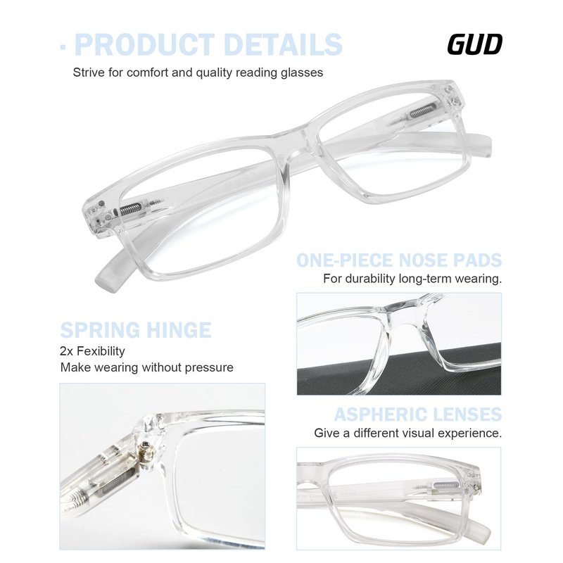 GUD Reading Glasses 5-Pack Readers Spring Hinge Reading Eyeglasses for Men Women +2.00