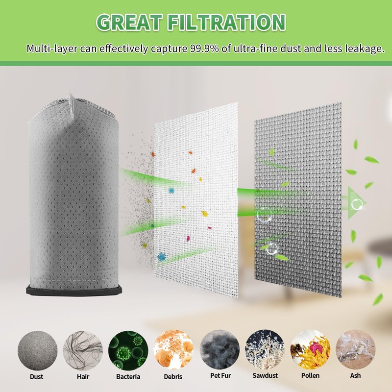 - ☘️ Premium Filtration Quality: With great capacity to collect dust, household debris, sand, hair. Filter up to 99.97 % of air particles. Relieve your dust discomfort and no more bad smell.