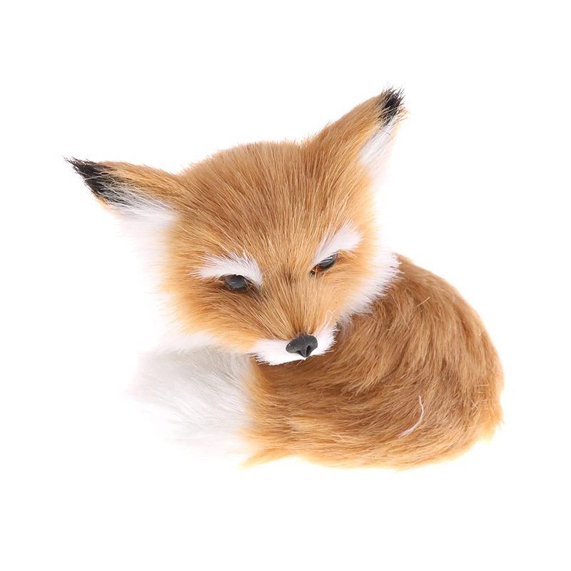 GUDVES Simulation Brown Fox Toy Furs Squatting Fox Model Home Decoration Animals World with Static Action Figures Plush Mini Fox (Pitching)