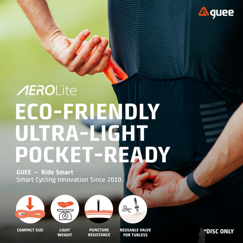 GUEE Aerolite MTB Inner Tubes combine cutting-edge lightweight design and innovative TPU material for top-tier performance. Weighing only 90/95g, they are designed to fit 27.5/29 inch MTB tires and are optimized for disc brake systems, providing enhanced efficiency and reliability. The advanced TPU construction ensures superior rolling efficiency, exceptional puncture resistance, and a smoother, faster ride. Featuring a 40mm Presta valve and an easy-to-follow installation guide, the Aerolite tubes offer unmatched durability, safety, and convenience. Eco-friendly and high-performance, Aerolite raises the bar for cycling innovation and quality.