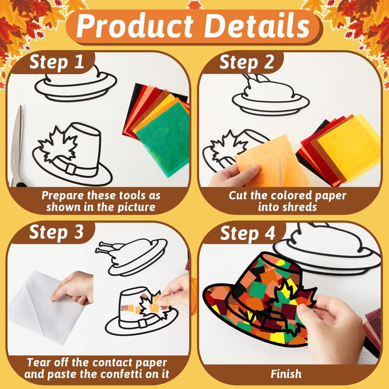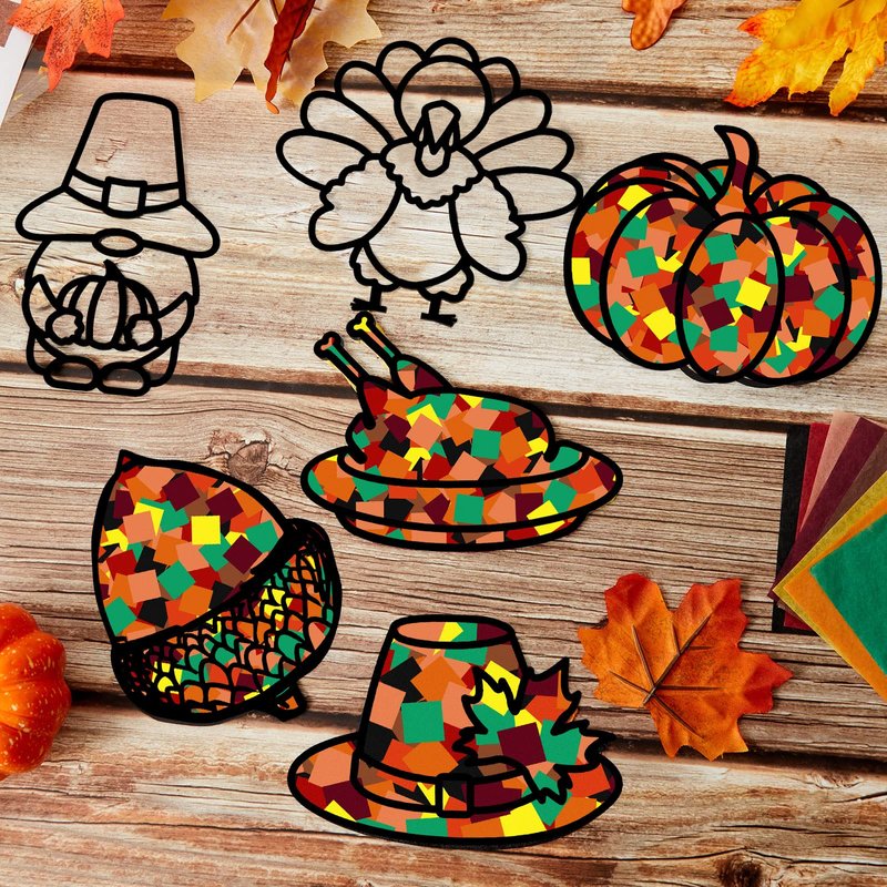 - Stained Glass Effect Paper Suncatchers: you will receive 18 pieces of Thanksgiving theme cutouts with 9 designs, 100 sheets of tissue paper with 10 colors, 20 pieces of glue sticks; Sufficient quantity and nice combination meet your various crafts making demands