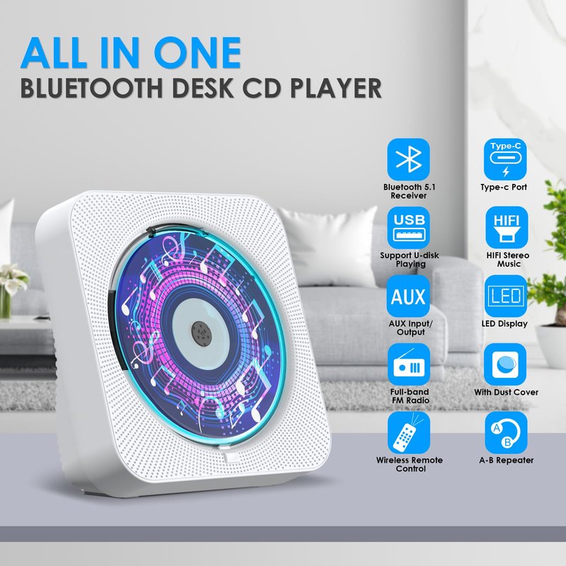 - Ideal Gift: Gueray CD Player is an excellent gift option for a variety of individuals, including kids, elders, parents, friends, and pregnant women. It comes with a remote control that can be used within a range of 5 meters and features A-B repeat functionality, making it ideal for language learning, prenatal education/antenatal training, and early education. It can be placed in any location of your choosing, such as living room, bedroom, bathroom, kitchen, cafe.