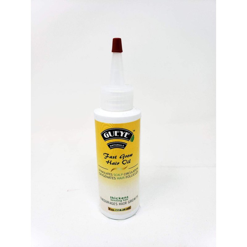 Gueye Fast Grow Herbal Formula Hair Oil L31 4ounce Fast Grow Hair Oil With our Fast Grow Hair oil formula, many receding and balding men and women are seeing remarkable results from this product. Our hair oil is excellent for scalp irritation, dandruff and other scalp problems. The hair oil stimulates circulation in the scalp, which brings oxygen to the follicles and assists in unclogging pores from shampoos and conditioners, most of contain plastic resins. It assists in growing and thickening. It also softens the hair and gives it a healthy shine. It contains cold pressed olive oil, capsicum, rosemary, aloe vera resin, sage, kelp, nettle, alfalfa, horsetail, and peppermint.