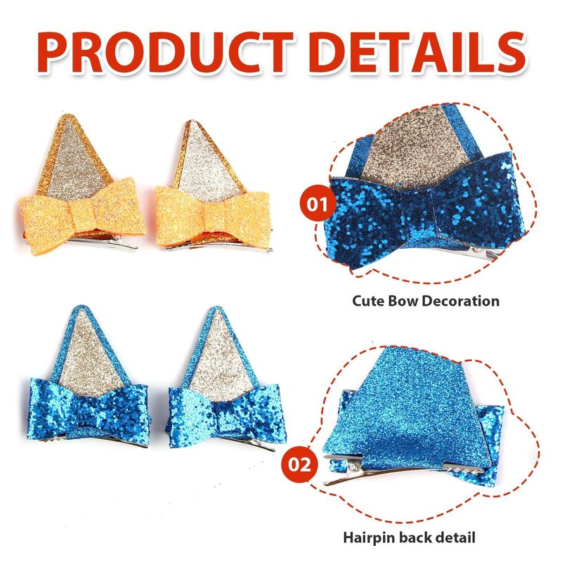 - 【Wide Applicability】These hair claw clips are available in a variety of colors and styles, suitable for any occasion. Glitter ear shape hair clips are perfect for daily wear, birthday parties, role-playing, themed parties, and Halloween costumes.