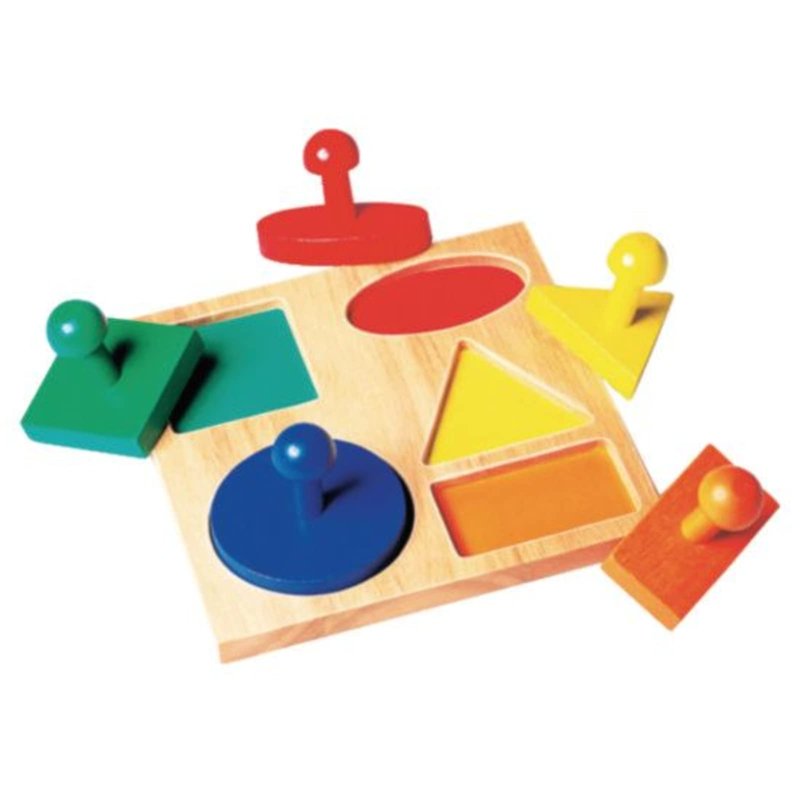 Guidecraft Geometric Colorful Puzzle Board - 5 Shapes: Kids Early Learning Educational and Development Toy