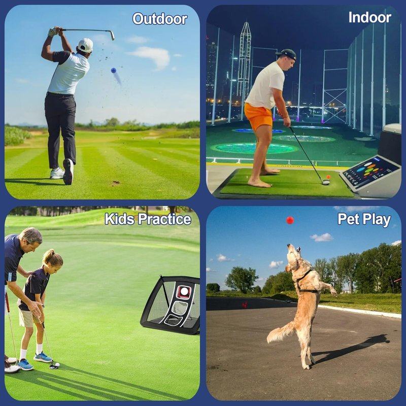 - Multiple applications: Foam golf practice balls are employed to backyard, indoor simulator and golf course practice. The practice golf balls can be tipped into a bucket next to the base camp to practise hitting the ball. The simulated golf ball can also provide a great toy for your pet, our foam golf balls will not hurt your furniture, glass windows and animals.