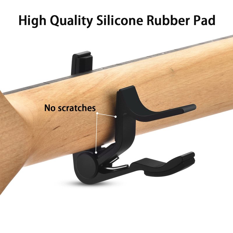 - Material Upgrade: This guitar capo is constructed from high-density aluminum alloy material, thicker silicone pad to provide strength and fatigue resistance, protects your precious guitar capos from any scratches or damage.