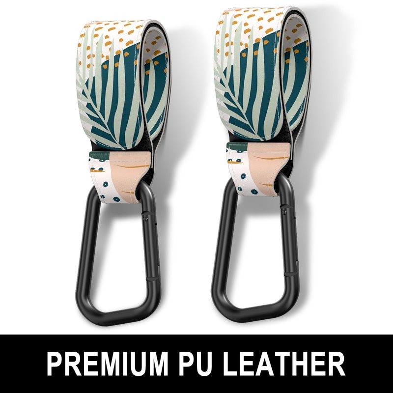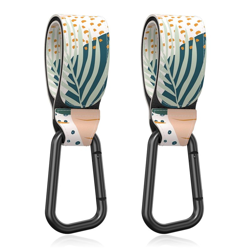 Gukeniu Baby Stroller Hooks for Hanging Bags, Universal Stroller Clips Stroller Accessories Hook Mommy Hook for Stroller, Diaper Bag, Shopping Bag, Purse, Backpack (Abstract Leaf, 2 Pack)