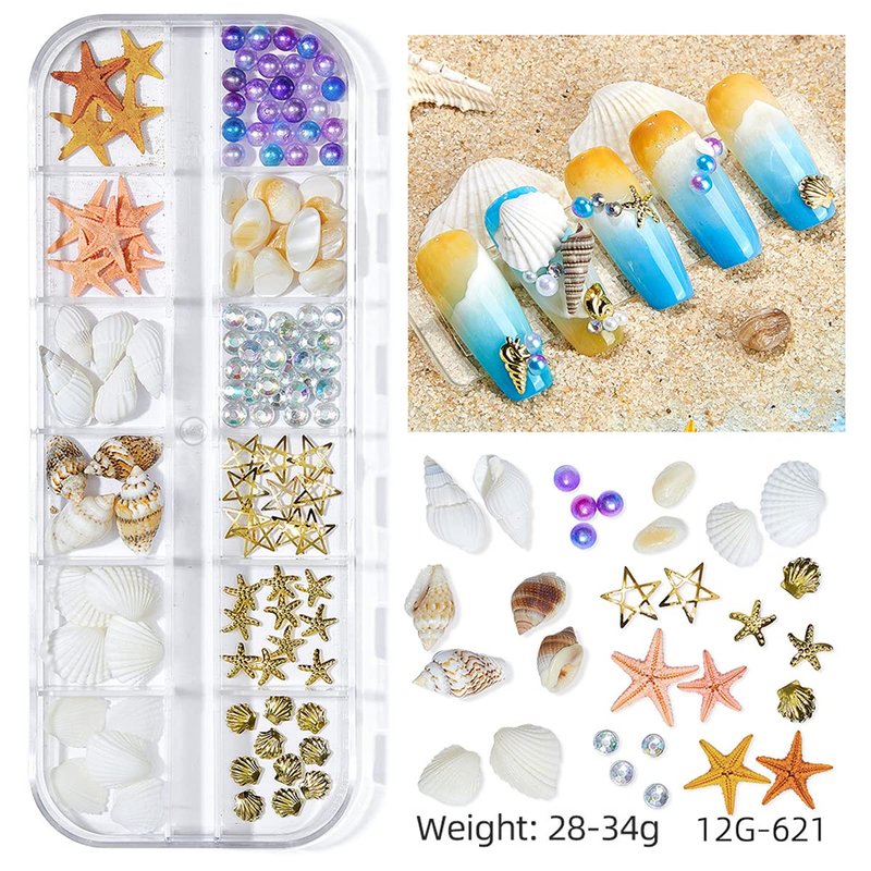 - Unique summer nail art rhinestones designs, Including different shapes of conch, shells, starfish, beads, and stylish and beautiful sea series nail charms, make your nails look more glamorous and charming.