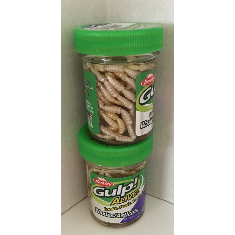 - Berkley Gulp Alive white waxies asticots come floating in "Magic Gravy" and are recharged when put back into the jar