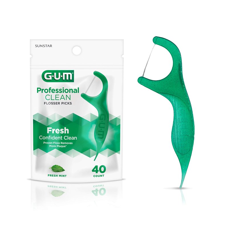 GUM Professional Clean Floss Picks - Extra Strong Shred-Resistant Floss, Easy Grip Handle - Dental Flossers for Adults - Fresh Mint Flavor, 40ct (6pk)