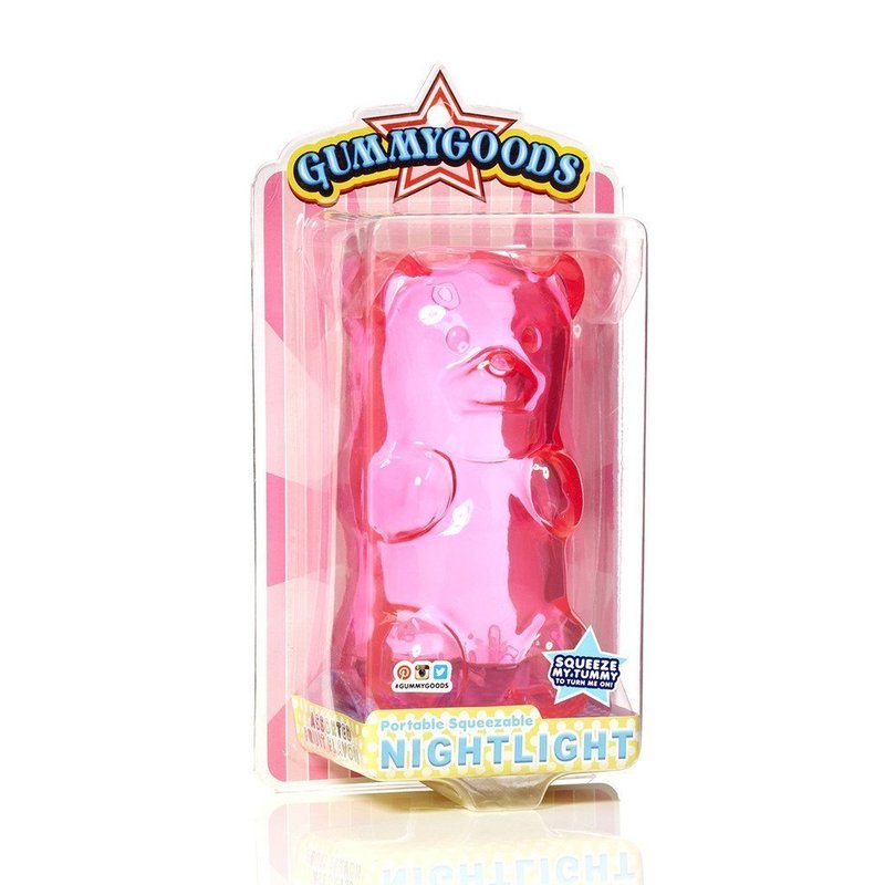 Gummygoods Squeezable Gummy Bear Night Light - Rechargeable, Portable, Squishy Lamp, 60-Min Sleep Timer - Ideal for Kids, Baby Nursery, Adults and Dorm Rooms - (Pink)