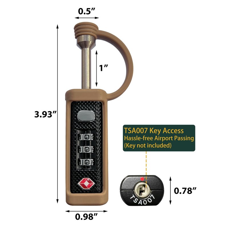 - 1. Lock size 3.9” x 0.95” x 1.05” inches. The locking pin is 1.05" long and 0.23" wide. Our TSA approved gun case locks are made of high quality alloy, have a protective rubber sleeve and a heavy duty cut resistant single shaft exterior that is durable enough to take a huge beating without breaking. Whether you use the combo gun case locks indoors, or for travel, rest assured that these gun carrying case padlock is and will deter any opportunistic thief to breach your case.