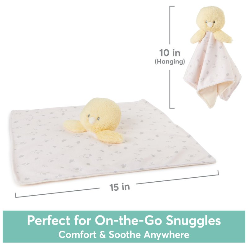 - 100% RECYCLED DUCKLING LOVEY: This cute and sustainably made 10” lovey combines a sunny yellow plush duckling with a double-sided security blanket for comfort anywhere baby needs it. The 15” square blanket also features a cute matching duck pattern