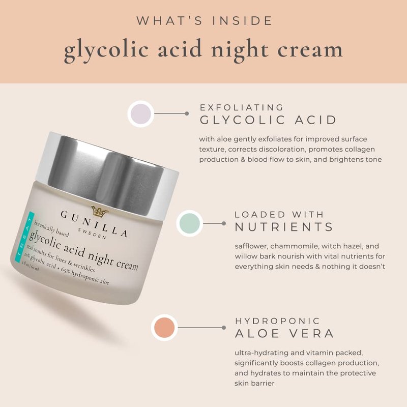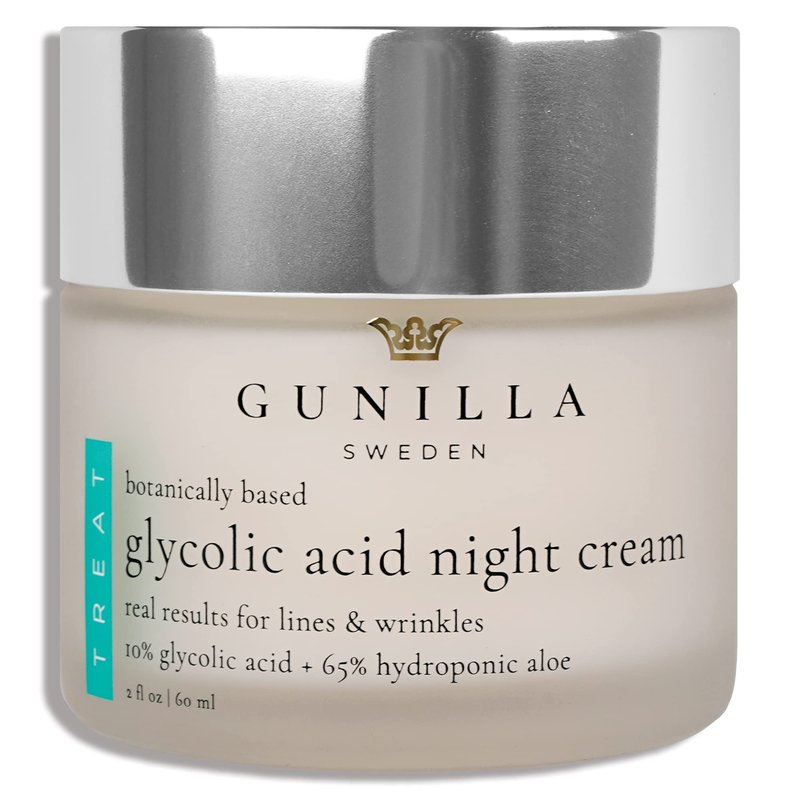 GUNILLA Glycolic Acid Night Cream - Refine, Resurface & Reduce Fine Lines, Wrinkles, Dark Spots, Congested Pores While Brightening Complexion. Gentle - Natural - Vegan (2 oz)