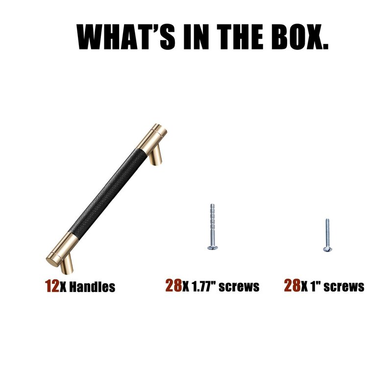 PRODUCT SPECIFICATIONS: Hole Center: 5 inch Length: 6.2 inch Height: 0.47 inch Width: 1.37 inch. Package includes selected 12 x handles, 28 x 1"screws, 28 x 1.77" detachable screws.