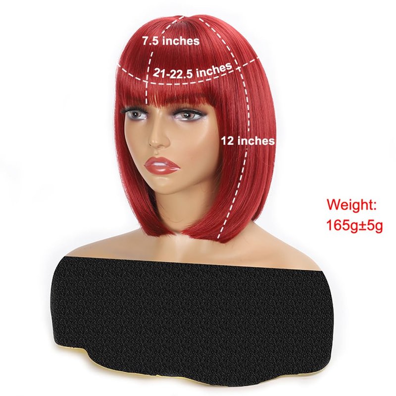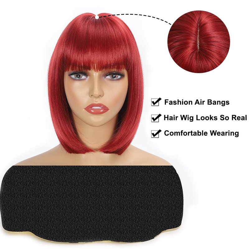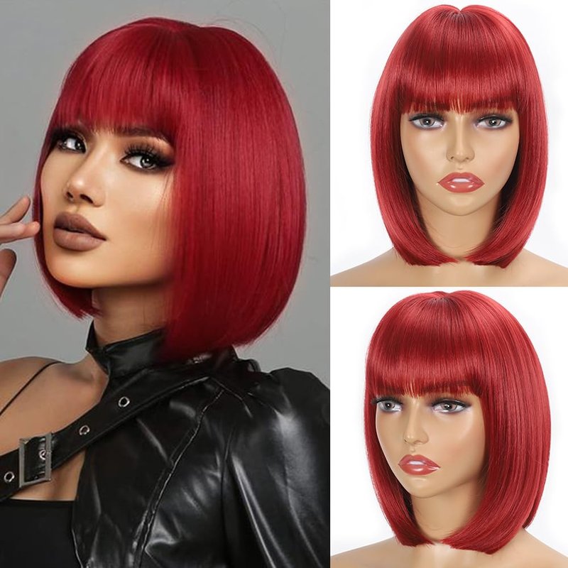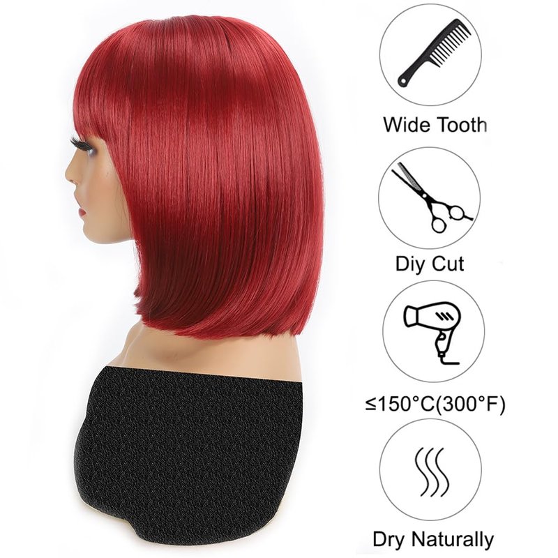 GUOJIAN 12 Inch Short Bob Wigs with Bangs Straight Bob Wigs for Women Synthetic Bob Wigs Natural Looking for Daily Party Cosplay (12inch, red)