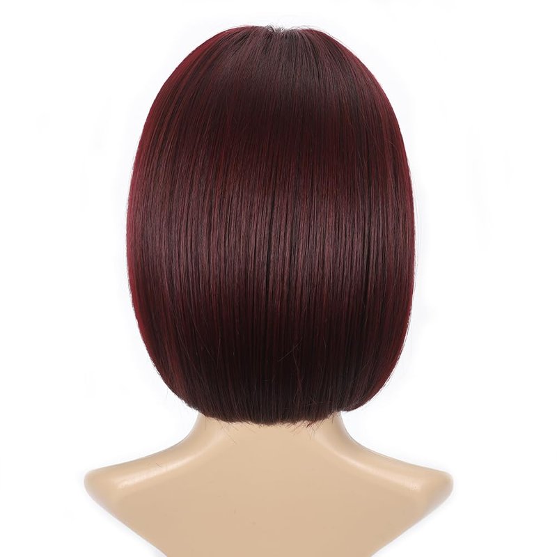 GUOJIAN 12 Inch Short Bob Wigs with Bangs Straight Bob Wigs for Women Synthetic Bob Wigs Natural Looking for Daily Party Cosplay (12inch, wine red)