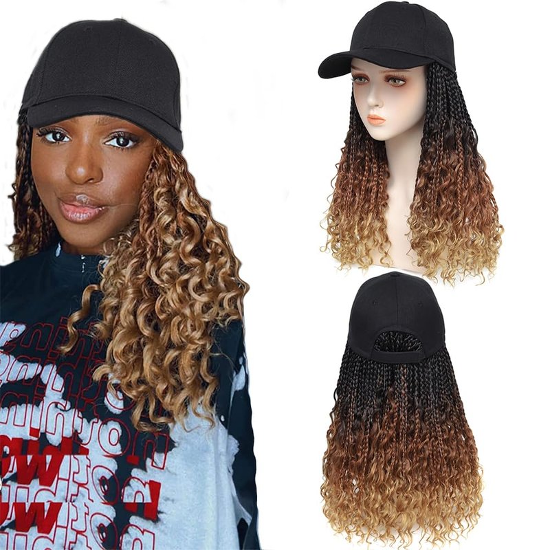 Material: Baseball cap with braided curly ends box braiding hair extensions
