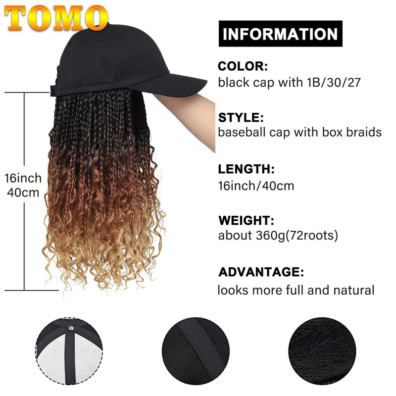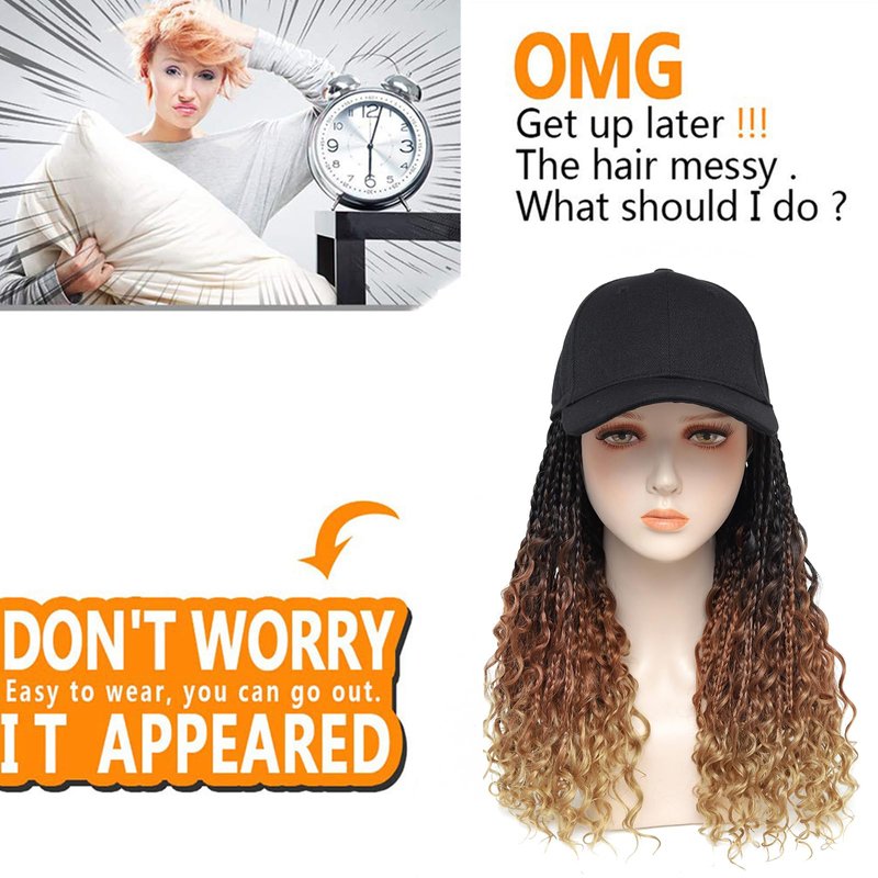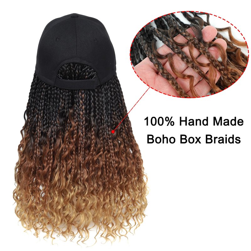 - Braided Hair Wig Material: The braided hat wig is made of high quality hand-made boho box braids with a baseball cap. It is fashion, natural and fascinating. Different colors available for making choice. Hat with Crochet box braids are relatively low maintenance and are a great style for your every day look.