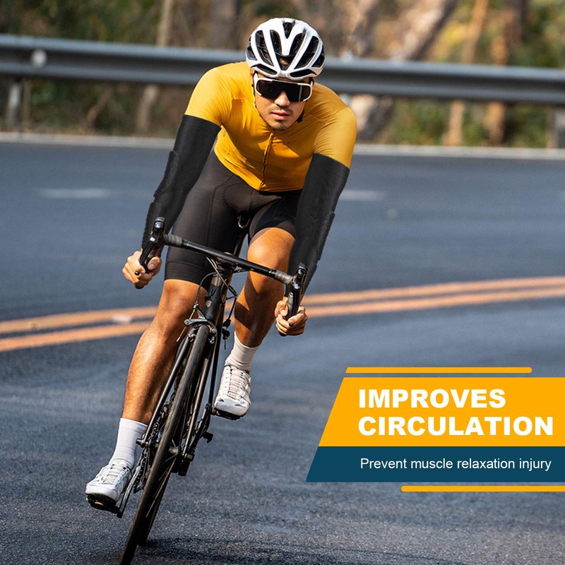 - 🌞【High Quality Elastin Fabric】 The arm compression can remain in place, and provide optimal compression to help ensure blood flow and proper circulation during exercise. The breathable elastic is going to keep you cool, will fit tightly, and help to wick away sweat during strenuous exercise.