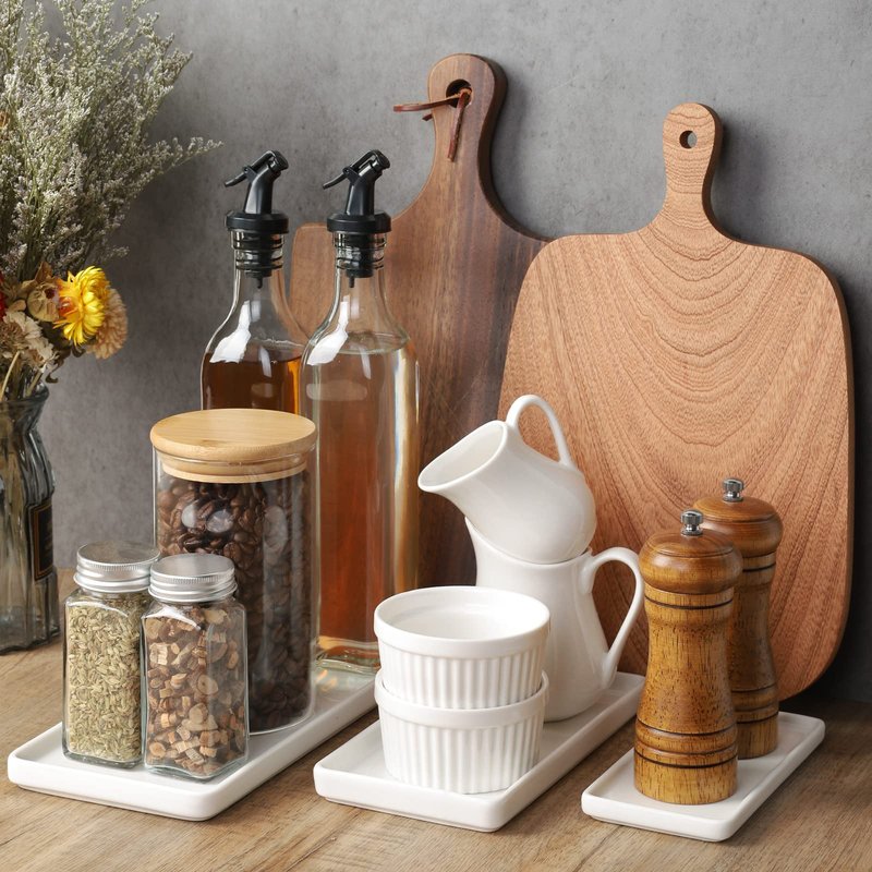 Gurygo 8" Bathroom Tray for Counter - Ceramic Vanity Tray for Bathroom - Small Rectangle Ceramic Tray - Kitchen Soap Tray - Ceramic Tray for Kitchen Counter - Bathtub Organizer (White, Set/1)…