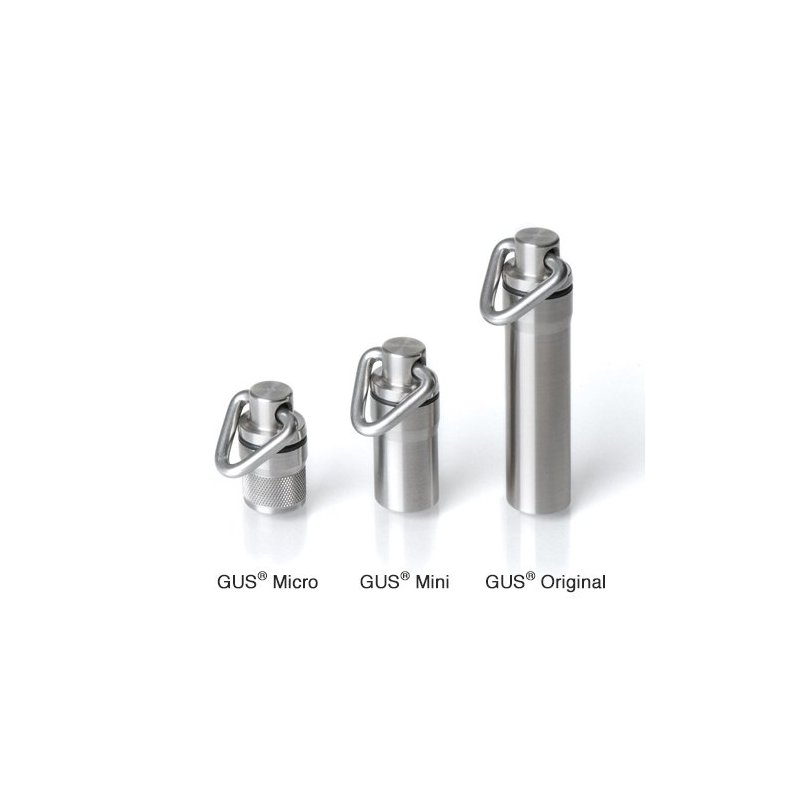 The GUS Original pill fob has a slender design that fits comfortably in your pocket. It holds 10 standard (325mg) aspirin tablets. Use for pills, mints, toothpicks, emergency cash, etc. All GUS brand pill fobs are precision machined from medical grade stainless steel and are practically indestructible. The mil spec O-ring seal keeps the container secure, airtight and watertight. The heavy duty, stainless steel triangle ring secures the pill fob to your key ring (a stainless steel key ring is included with every pill fob). From domestic stainless steel to the O-ring to the triangle and key ring, all components of the GUS brand pill fob are Made in USA. With reasonable care, the GUS brand pill fob will provide you a lifetime of dependable service.