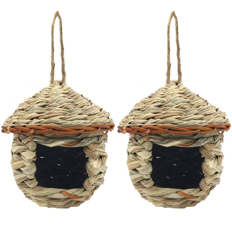 Gute Hummingbird House, Grass Hand Woven Birdhouses for Outdoors Hanging, Natural Bird Hut for Outside, Bird Houses for Audubon Finch Canary Chickadee - Set of 2 (Small)