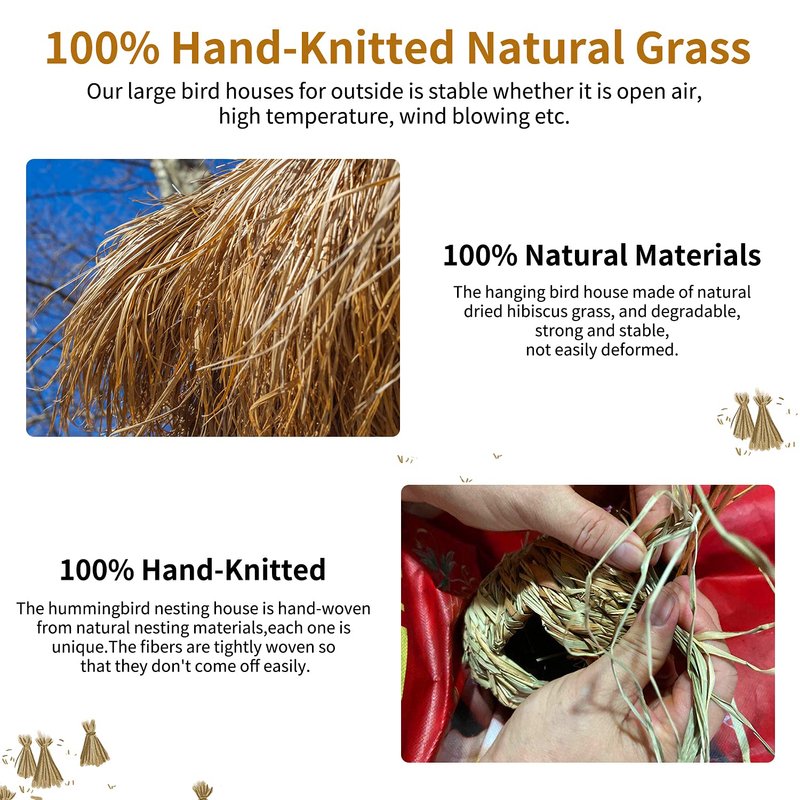 - ❤100% HAND-KNITTED: The hummingbird nesting house is hand-woven from natural nesting materials, each one is unique. The fibers are tightly woven so that they don't come off easily. It provides them with the required ventilation and comfort.