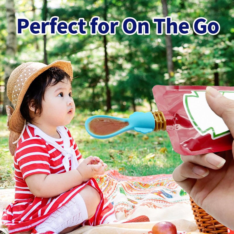 - Easy to Use - Our baby food pouch toppers attaches easily to baby food pouches and will not leak. Just squeeze the food pouch gently to squeeze the puree onto the spoon for easy feeding