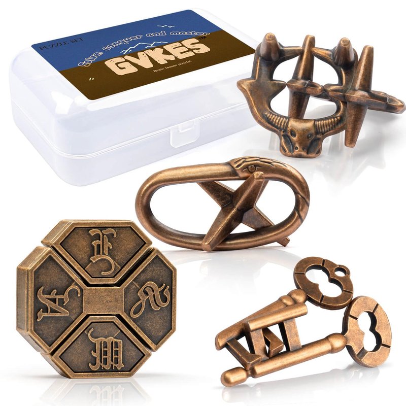 GVKES Fun Metal Brain Teaser Puzzle Games - 4 Pcs Adults Mind Travel 3D Toys -Teens IQ Insight Challenge - Logic Educational Gift(with Storage Case and Instructions)