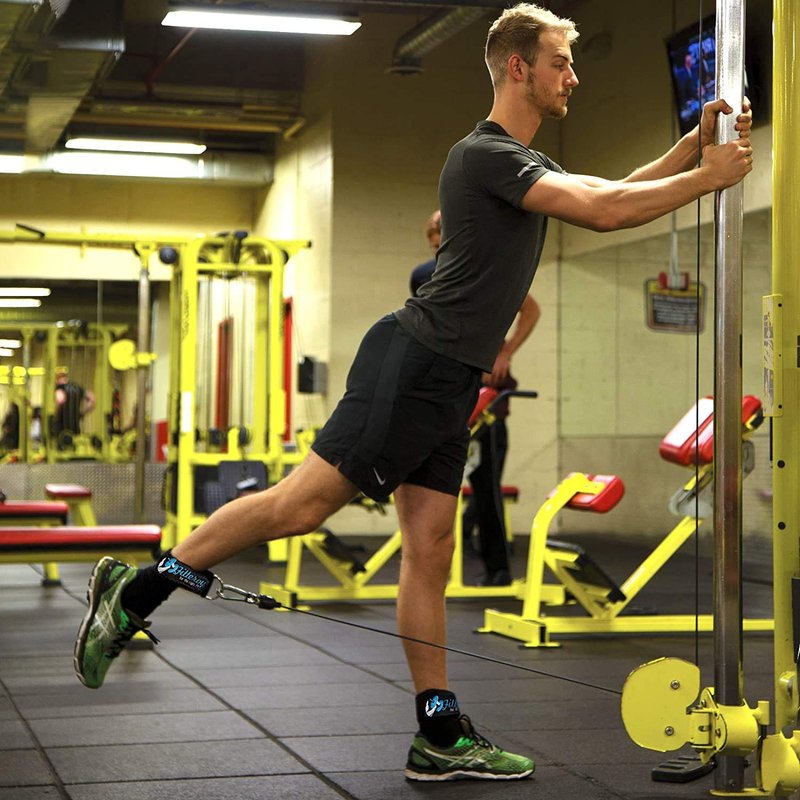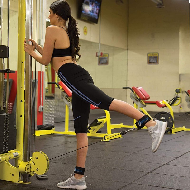- VERSATILE Use with heavy weight on weightlifting strength training machines. Compatible with Bowflex cable equipment, Total gym, functional trainer, exercise resistance bands, Weider home gym The best strap you could possibly get for a variety of exercises including: cable kickbacks, leg extensions for quads, hip abductions and adductions, mountain climbers, hamstring curls, lunges, glutes tightening and inner outer thigh contractions