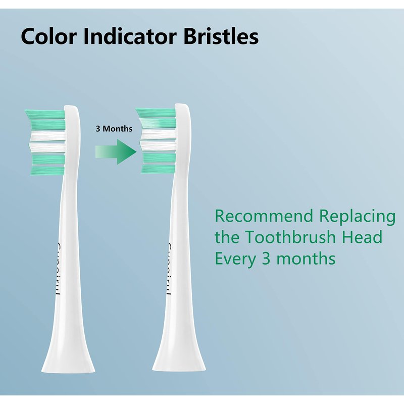 - REMINDER BRISTLES: Reminder bristles colored will fade when a replacement is needed, usually three months.