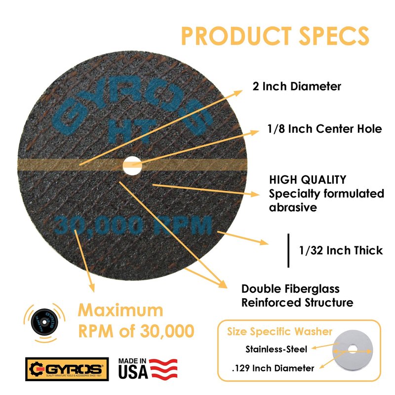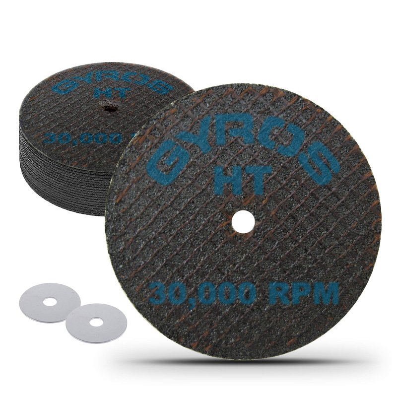 - Works with Variety of Tools – These cutting disks are compatible with a wide range of rotary cutting instruments, including Dremel tools, electric drills, hanging grinders, and so on, making them the ideal rotary cutter. Use with Gyros Stainless Steel Mandrel SKU 40-00470 is compatible. For your safety - always use cutting discs with the GyrosGuard Safety Shield SKU 50-25010