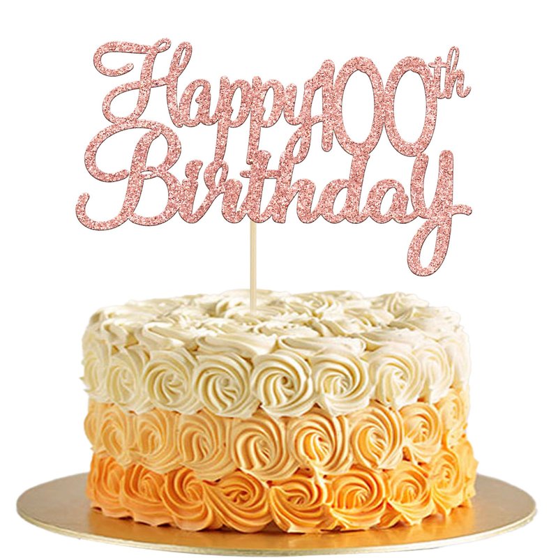 Gyufise 1 Pack Rose Gold Happy 100th Birthday Cake Topper Glitter Happy 100 Cupcake Topper Cheers to 100 Fabulous Cake Decoration for 100th Birthday Party Decoration Supplies