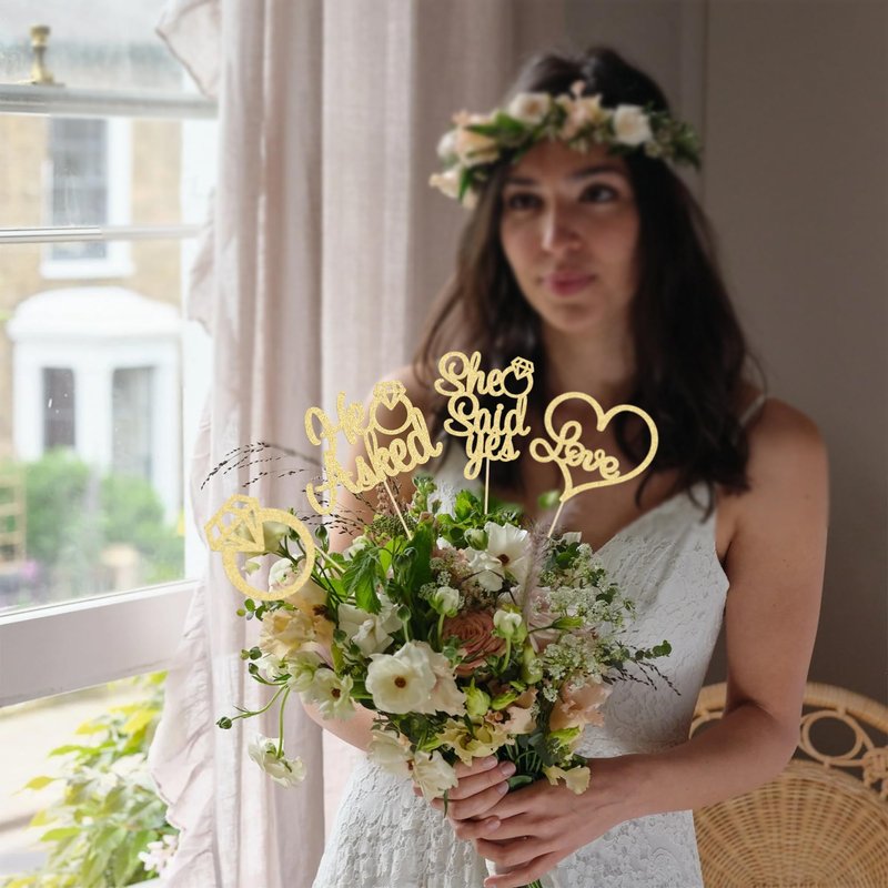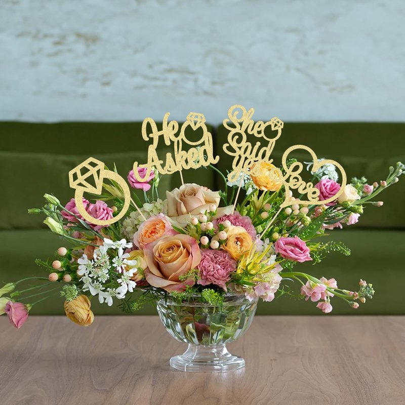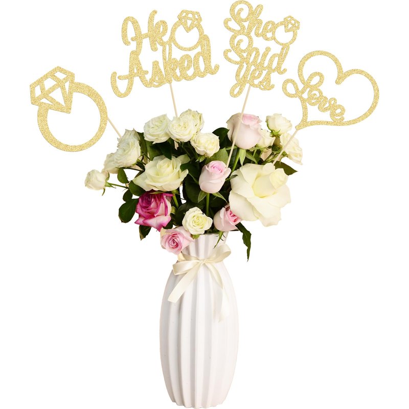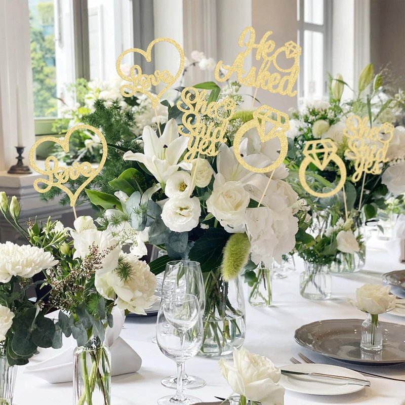 - -Premium Material: These She Said Yes Centerpiece Sticks are made of 300 gram double-sided glitter card stock and 100% food grade bamboo stick, not easy to deform and fade, smooth edges without burrs.they will be shine in the light, easily enhance the party vibes and draw attention of people.