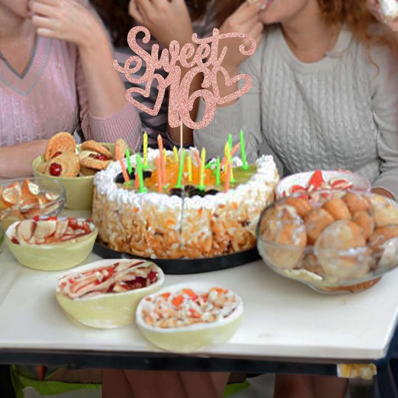 - 💕💕This Sweet 16 Cake Topper is so cute and good for 16th birthday party, 16th anniversary party cupcake decorations. They can make your cupcake more attractive and bring the fun to your party. You can also apply them for ice cream, fruits, cookies and other desserts.