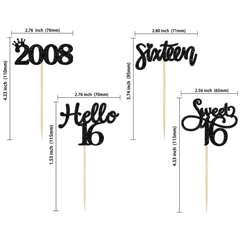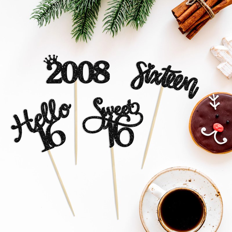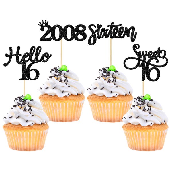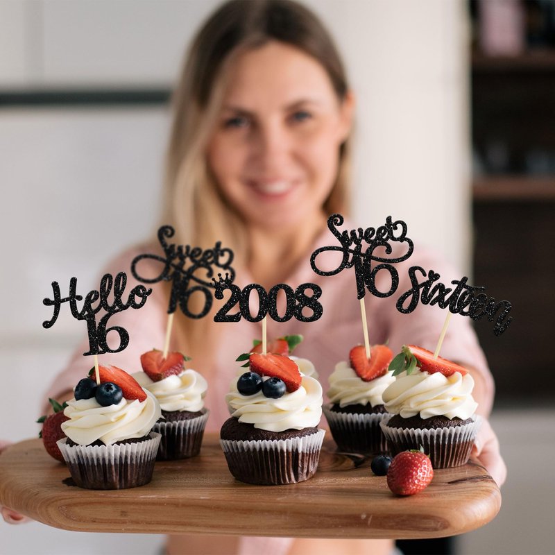 - ⭐Black 16th Birthday Cupcake Toppers are so cute and good for 16th theme birthday parties, 16th anniversary parties, since 2008 theme party or other party celebrations. Make any plain looking cake creative.