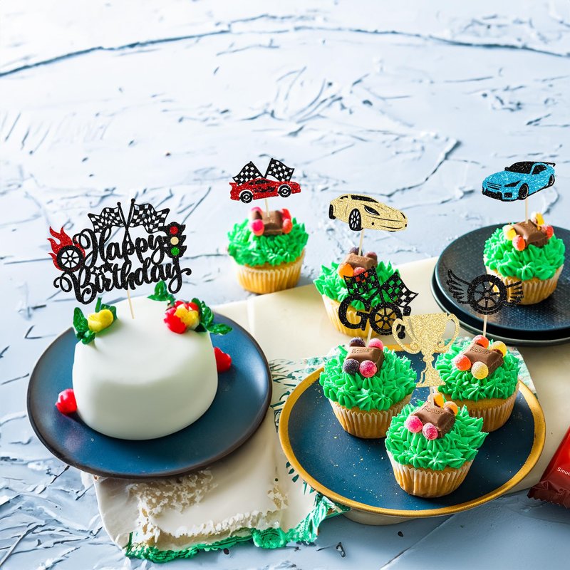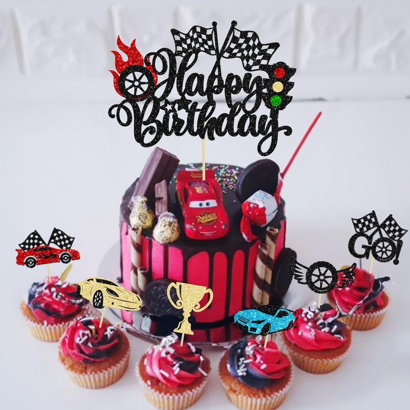 - --These Race Car Birthday Cake Toppers Set are so cute and good for race car theme birthday party, let's go racing theme party, sports theme party, baby shower theme party, boys birthday party cupcake decorations. They can make your cupcake more attractive and bring the fun to your party. You can also apply them for ice cream, fruits, cookies and other desserts.