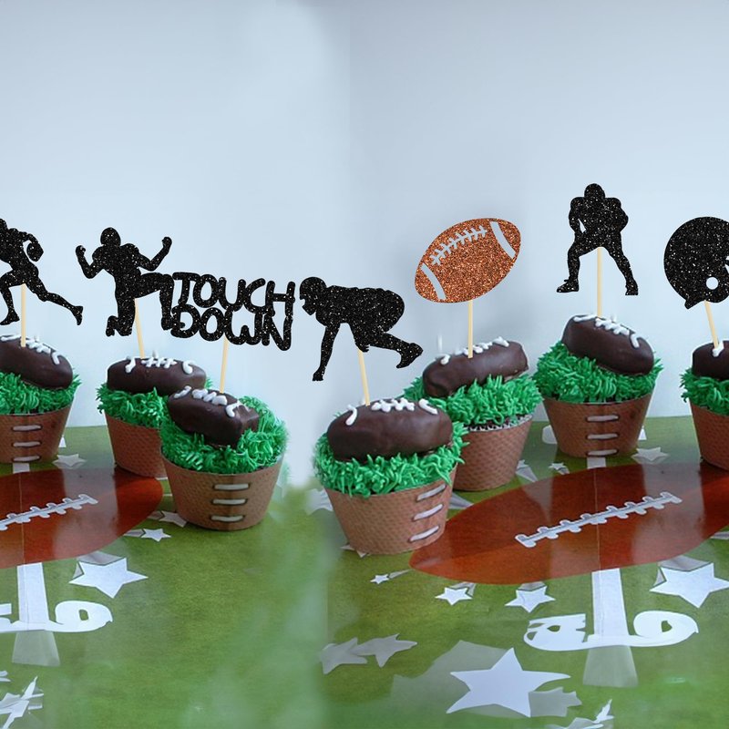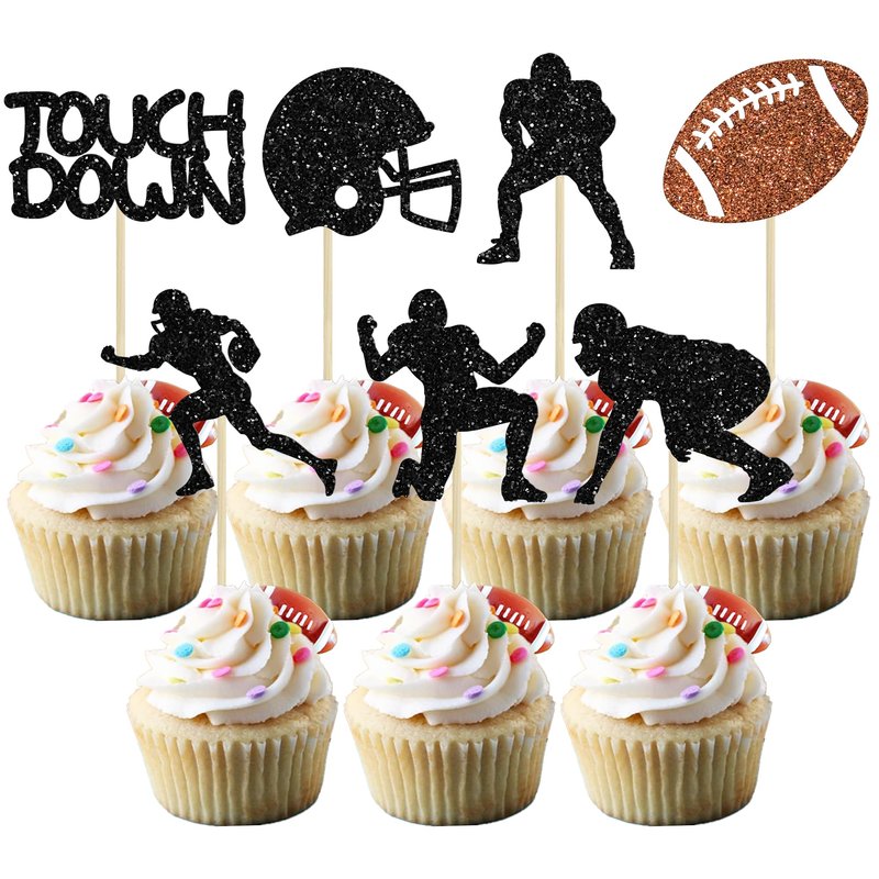 - 🏉These glitter Black Rugby Ball Cupcake Toppers are so cute and good for rugby ball theme party,football theme party,baby shower party, kids birthday party cake decoration. They can make your cupcake more attractive and bring the fun to your party. You can also apply them for ice cream, fruits, cookies and other desserts.