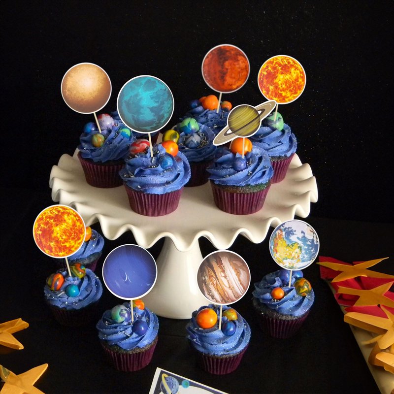 - ❤These Space Cupcake Toppers are so cute and good for outer space theme party, astronaut universe theme party, space astronaut theme party, trip to the moon theme party, baby shower theme party, kids birthday party cupcake decorations. They can make your cupcake more attractive and bring the fun to your party. You can also apply them for ice cream, fruits, cookies and other desserts.