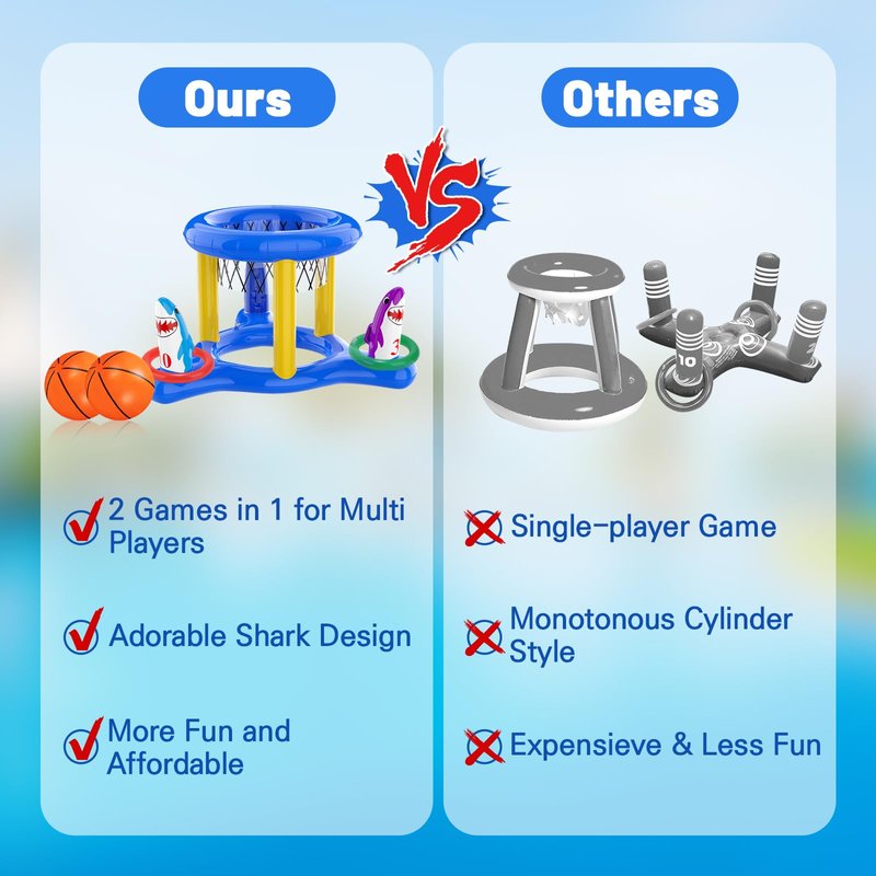 - 【Funny Floating Inflatable Ring Toss Pool Games】:The Swimming pool toys set is suitable for all ages.Adults and children can play together, assign the same number of basketballs and rings, compare the high and low scores, and the one with the highest score wins.