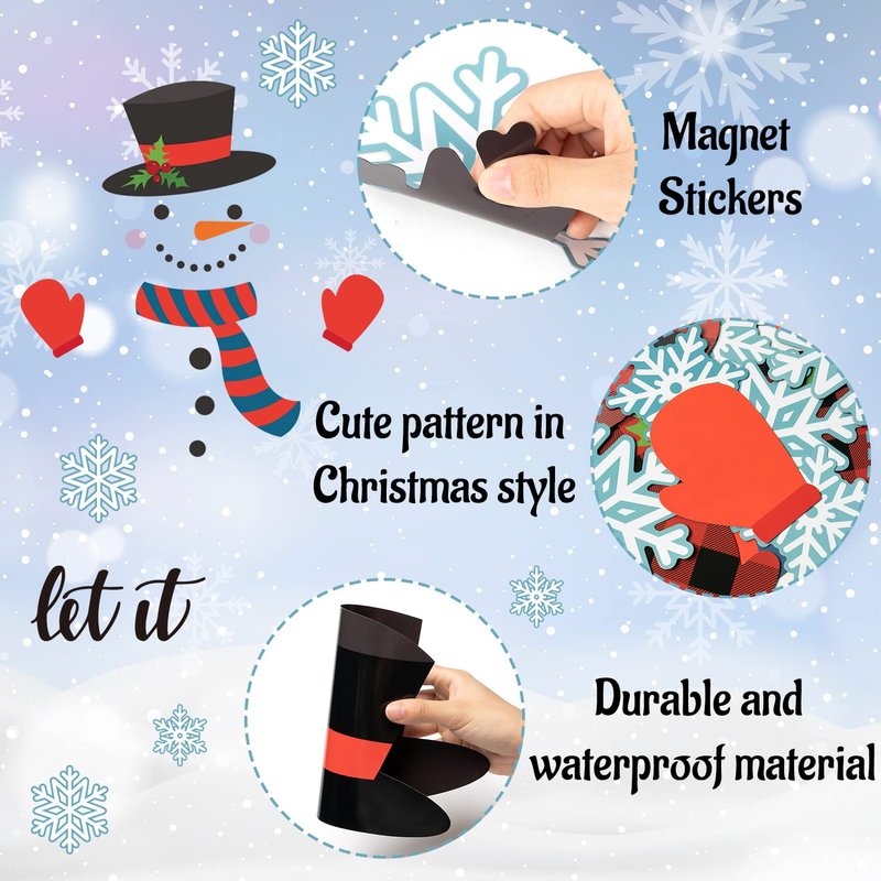 - The Package Includes: 12 of Christmas snowman magnet stickers. Specifically include 4 parts of let it snow words, 6 Christmas snowflake patterns, 2 Christmas snowman patterns.
