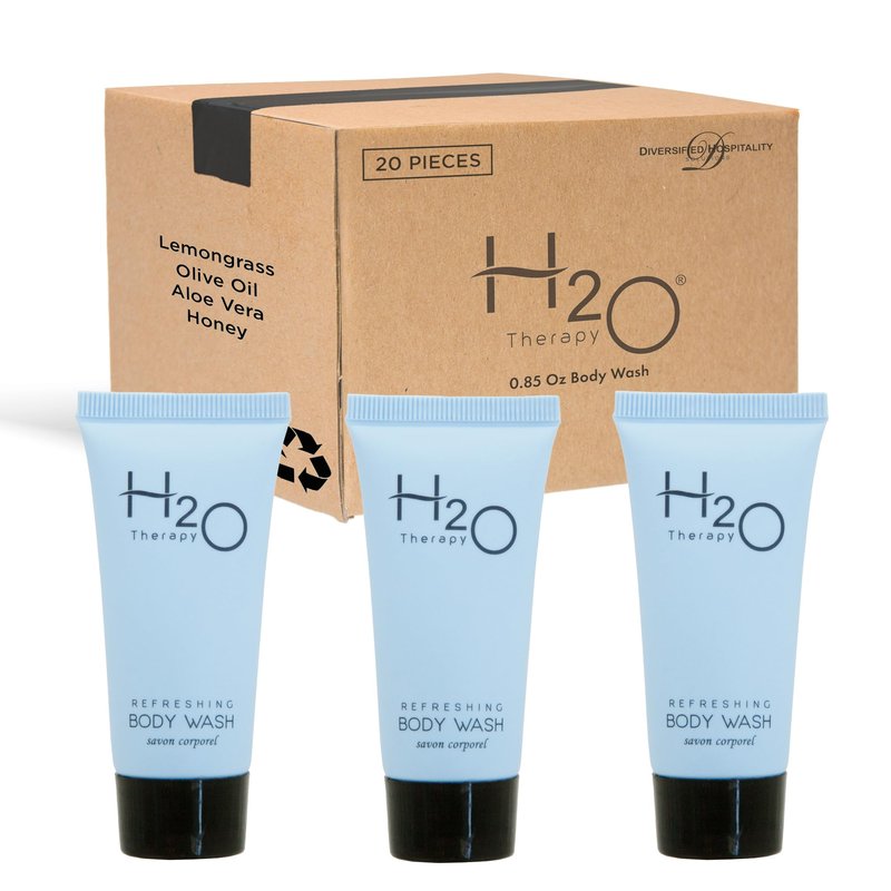 H2O Therapy Body Wash Soap, Travel Size Hotel Hospitality, 0.85 oz (Case of 20)