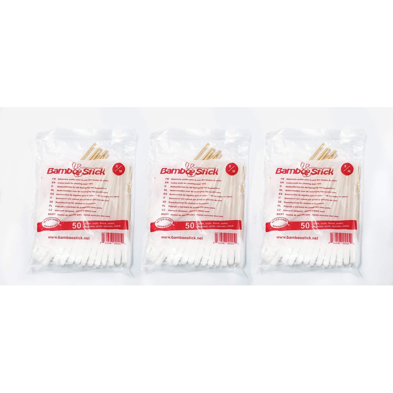 H3D Bamboo Stick Cotton Buds for Cleaning Dog's Ear Triple (50 Pack), Small/Medium