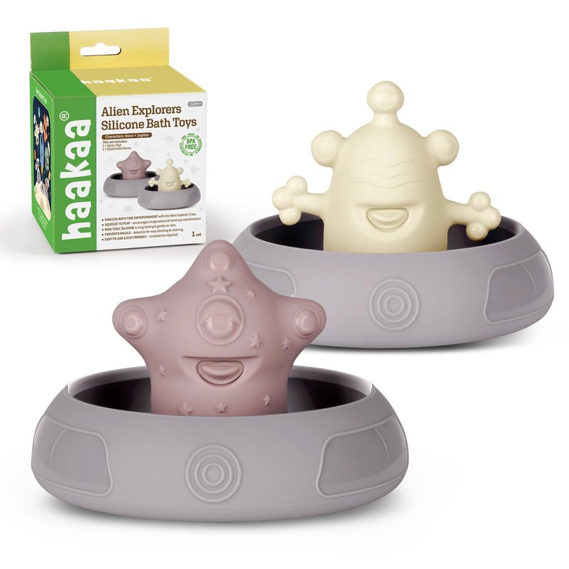 Haakaa Alien Explorers Baby Bath Toys, Food Grade Silicone Toddler Squirt Water Toys for Bathtubs/Swimming Pools/Beaches, Detachable Mold Free Floating Tub Toys for Kids Ages 1-3 (Nova+Jupiter)