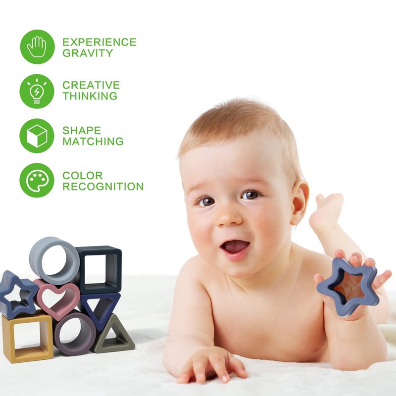 - 👶 STACKING TOYS & TEETHING TOYS - The soft, non-toxic silicone pieces are great for quiet play, baby can stack in anyway, exercise children’s hand-on ability and creativity. Chewable, can be used as teething toys, massage baby's gums gently.
