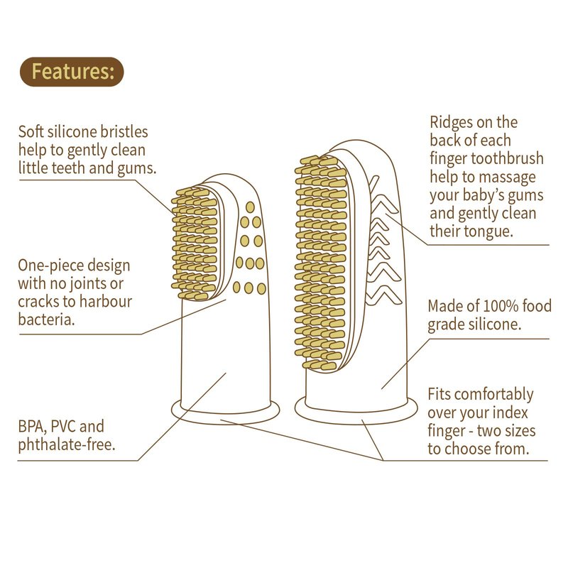 - ✔️SET OF 2 SIZES - Two sizes fit comfortably over your index finger.Allow multiple options for cleaning and soothing delicate new teeth and gums.Includes handy storage case.